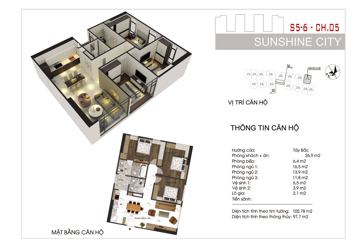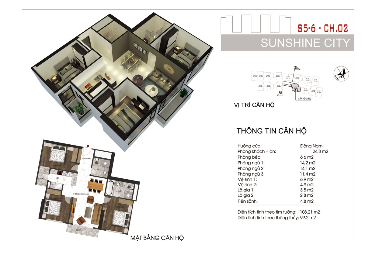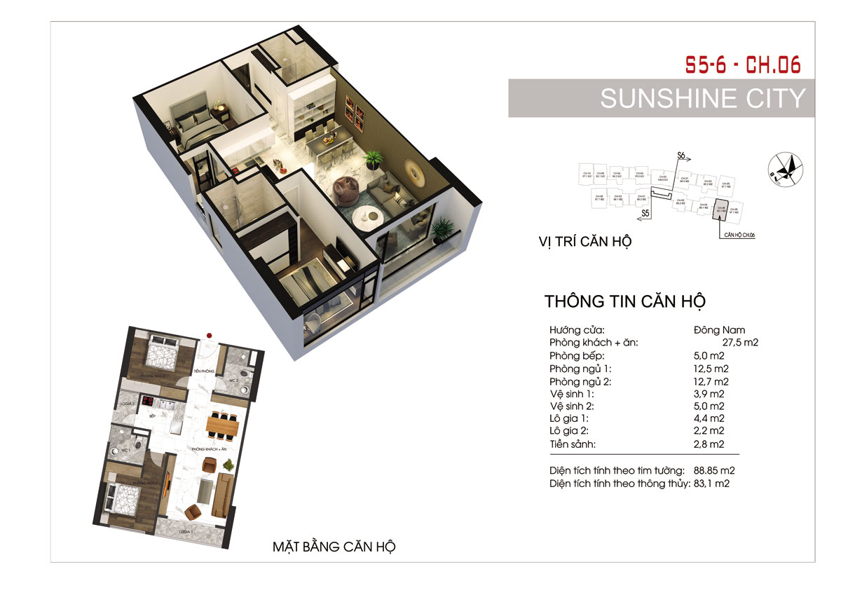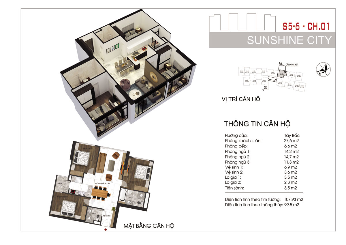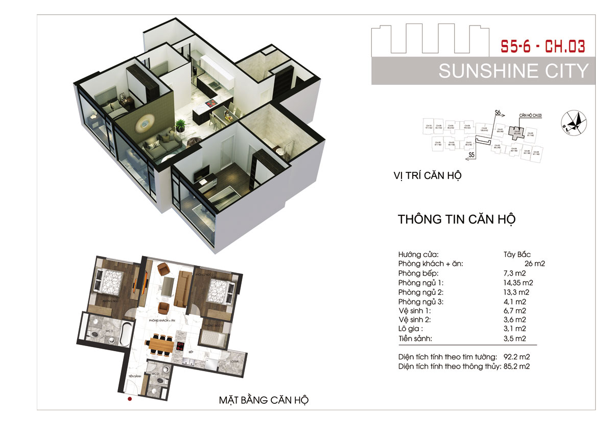 - Diện tích căn hộ: 80- 122 m² (2 – 3PN)
