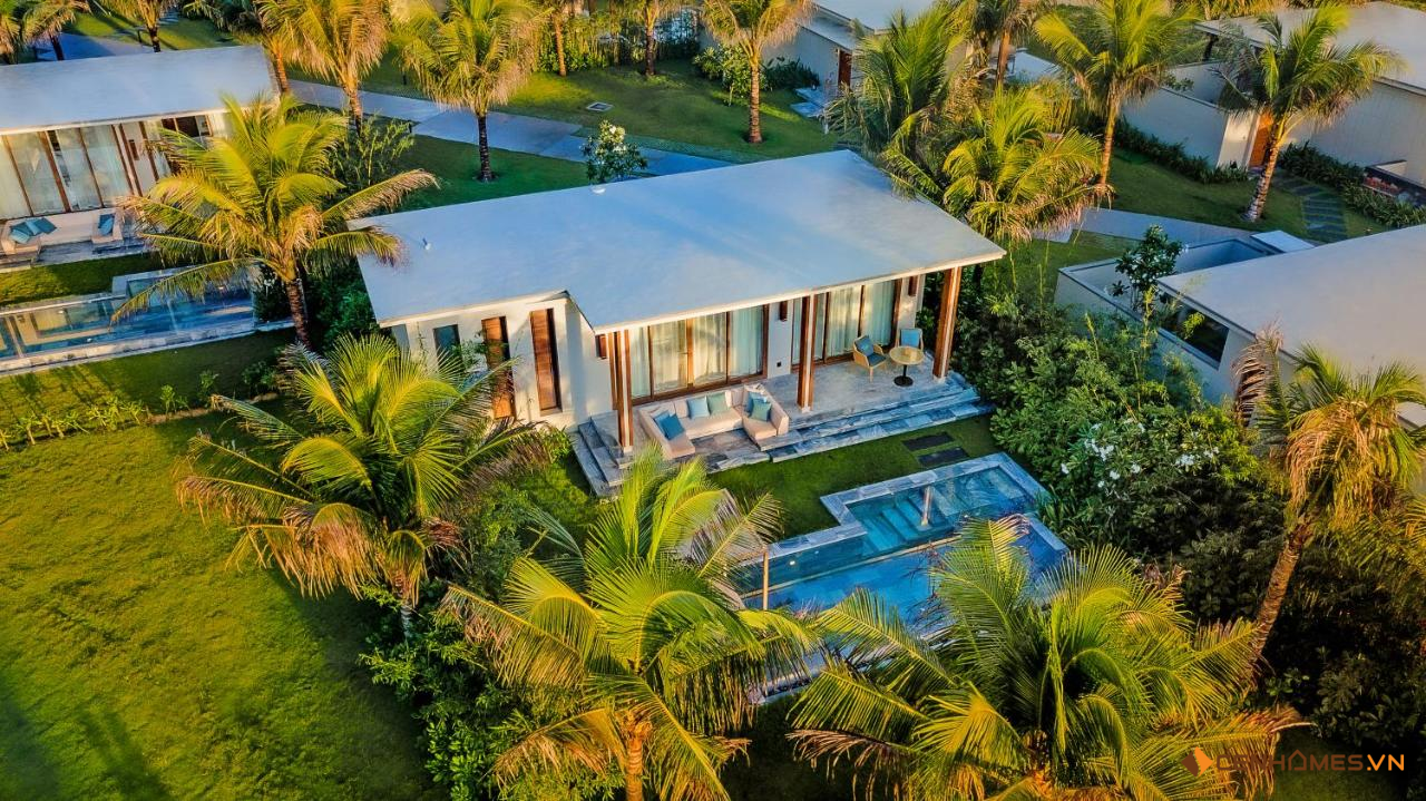 Kiến trúc xây dựng chuẩn resort 5 sao: - Kết hợp cân bằng giữa cảnh quan thiên nhiên với mật độ xây dựng cũng như bố trí hệ thống tiện ích một cách khoa học. - Kết hợp hài hòa giữa kiến trúc hiện đại và dấu ấn địa phương trong từng đường nét.