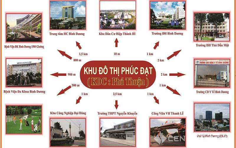 Ngoài ra, trong vòng bán kính 2 km xung quanh dự án, cư dân còn tiếp cận các khu công nghiệp lớn của thành phố và Khu dân cư Hiệp Thành III, đều là các điểm đến quan trọng của thành phố. Điểm qua một vài tiện ích hạ tầng ngay gần dự án như sau: Cao đẳng Y tế Bình Dương, ĐH Thủ Dầu Một, ĐH Bình Dương, Công viên Văn hóa Thanh Lễ, THPT Nguyễn Khuyến, KCN Đại Đăng, Bệnh viện Đa khoa Bình Dương, Khu Công Nghiệp VSIP II, Khu Công Nghiệp Mỹ Phước I, II, II, IV,...