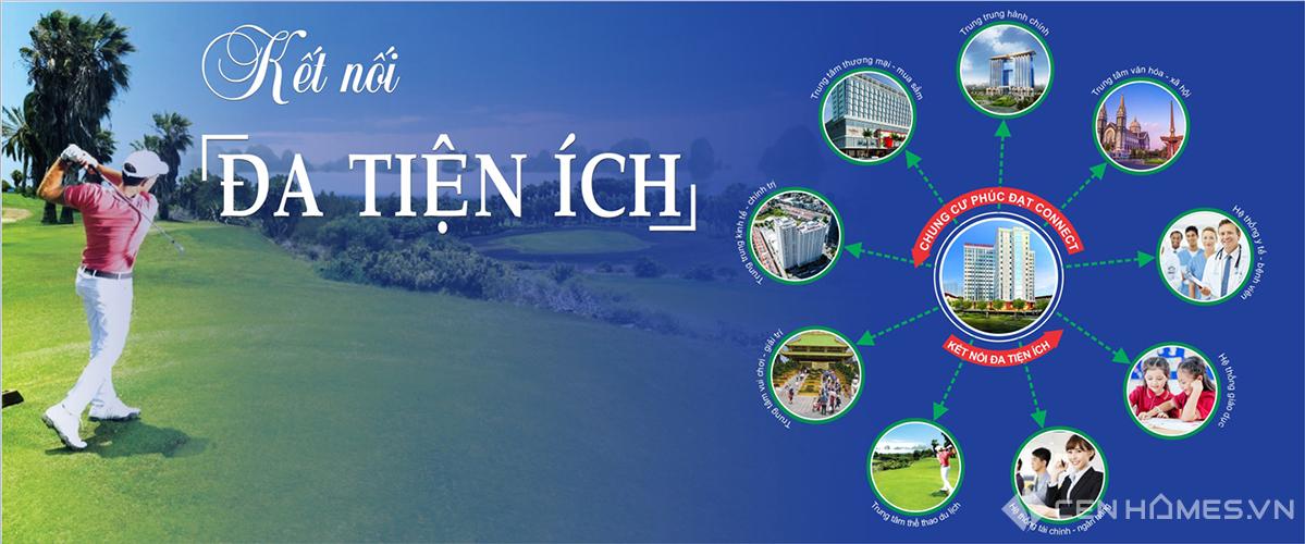 Để xứng đáng với vị trí và quy hoạch vượt trội, chủ đầu tư cũng mang đến cho PHúc Đạt Connect hệ thống tiện ích đắt giá, sẵn sàng đáp ứng mọi nhu cầu tiện ích của người dân. Chưa kể, hệ thống shophouse kinh doanh ngay dưới chân dự án sau khi hoàn thiện sẽ là các cửa hàng kinh doanh năng động phục vụ nhu cầu mua sắm của cư dân.