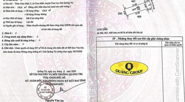 Cam Hiếu Diện Tích 6x21m Vuông vức 126m2 đất ở 100% bên cạnh karaoke Hoàng Gia. Cách đường Qlo 9 50m đường bê tông 5m. Đất cao ráo, bằng phẳng. Gần Trường học, cây xăng, cao tốc Cam Lộ-La Sơn. và các cơ sở ban ngành và nhiều tiện ích khác.
